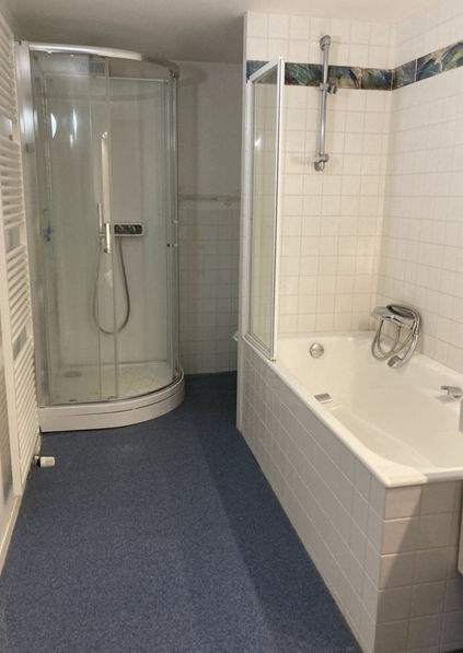 Voor koppels die op zoek zijn naar privacy, wacht onze tweepersoonskamer op u! Met een eigen badkamer, uitgerust met een douche, een bad, een wastafel en een toilet.